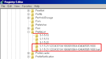 4. Dalam folder tersebut terdapat 2 folder dengan awalan S-1-5-21 diikuti dengan nomor yang panjang dan sama persis di belakangnya. Tetapi yang membedakan adalah satu berakhiran .bak