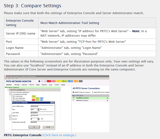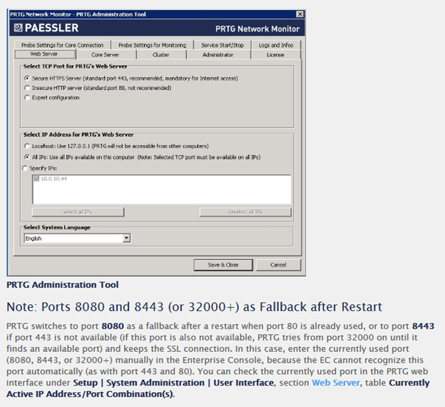 Penyebabnya adalah pada saat penggantian koneksi menjadi https, maka portnya juga berganti. Oleh karena itu harus diganti juga pada bagian PRTG Console Setting dan PRTG Administration Tool.
