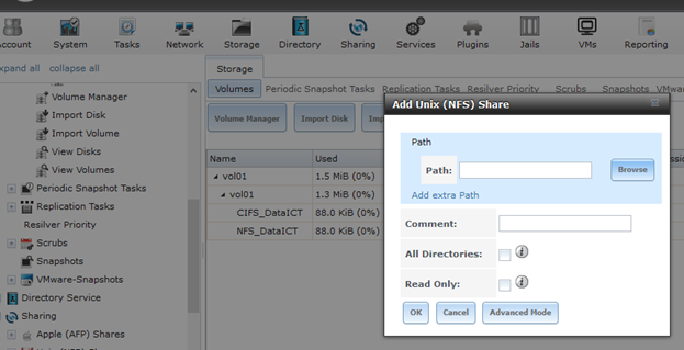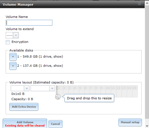 4. Menambahkan storage dari menu Storage > Volumes > Volume Manager