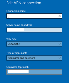 5. Untuk pengaturan PPTP pada Windows 10, pada bagian server name, isikan dengan IP publik Mikrotik.