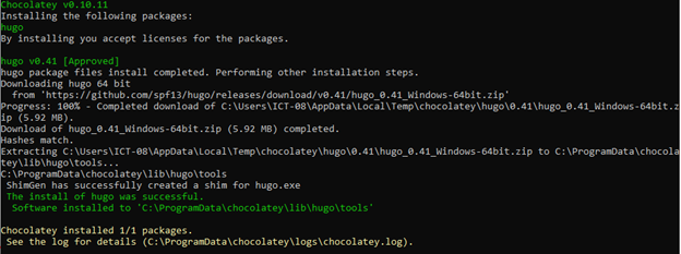 - Untuk menginstall hugo dapat dijalankan melalui cmd (administrator level) cukup dengan perintah berikut