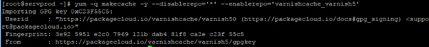 # yum -q makecache -y --disablerepo='*' --enablerepo='varnishcache_varnish5'