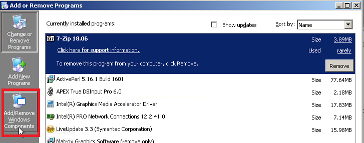 control panel>Add Remove Programs>Add/Remove Windows Components