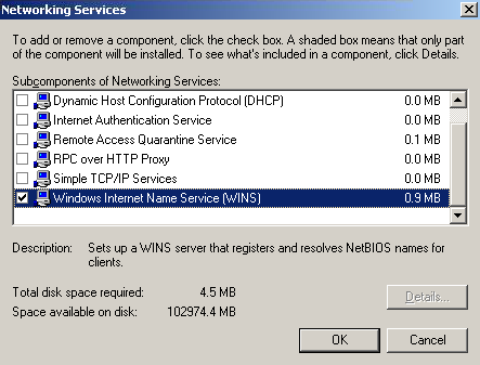 Untuk menginstall paket WINS pada windows server 2003 kebutuhan yang harus disiapkan adalah