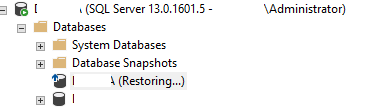 Ketika me-restore database terkadang terjadi error seperti status restore database tidak berubah seperti gambar di bawah ini.