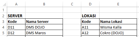 1. Sheet1 untuk menyimpan hasil dari vlookup dan concat dari sheet berikutnya.